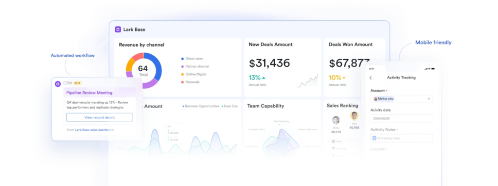 Pengembangan solusi khusus menggunakan fitur native Lark seperti Base, Forms, dan Automation untuk kebutuhan operasional spesifik